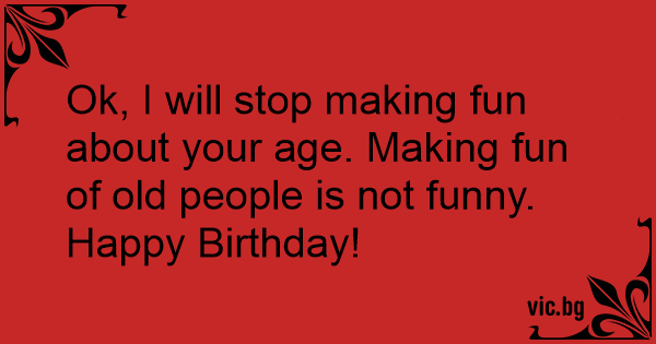 Ok, I will stop making fun about your age. Making fun of old people is not funny.