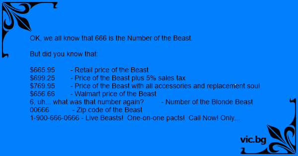 6.66 % - 5 year CD interest rate at First Beast National Bank, $666 minimum deposit.