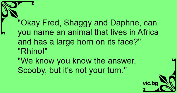 "Okay Fred, Shaggy and Daphne, can you name an animal that lives in Africa and has a large horn on its face?"