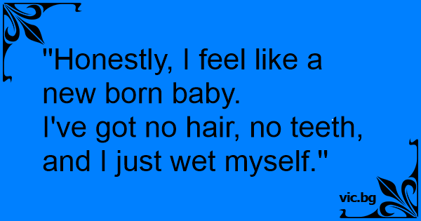 ''Honestly, I feel like a new born baby.I've got no hair, no teeth, and I just wet myself.'' 0 0 0 Medical and Doctor Jokes