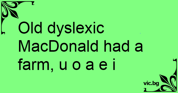 Old dyslexic MacDonald had a farm, u o a e i