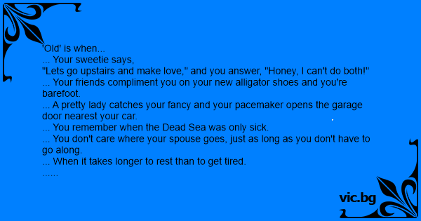 "Lets go upstairs and make love," and you answer, "Honey, I can't do both!"