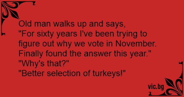 "For sixty years I've been trying to figure out why we vote in November. Finally found the answer this year."