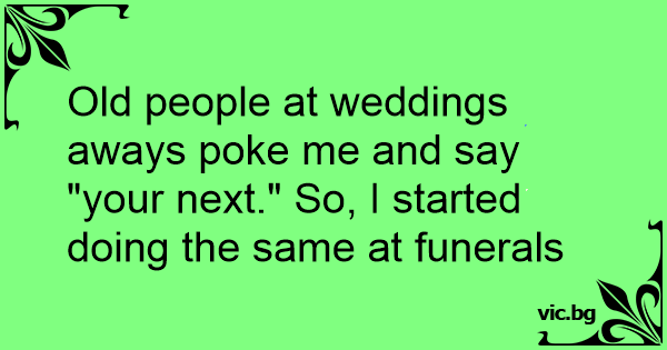 Old people at weddings aways poke me and say "your next." So, I started doing the same at funerals