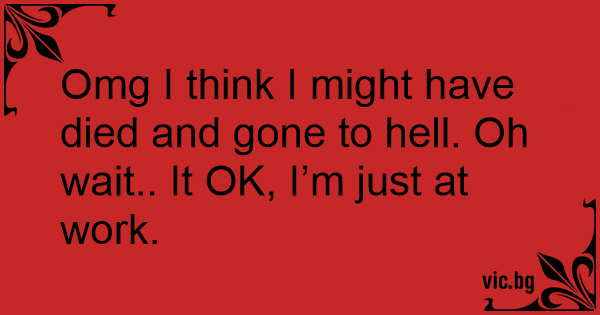 Омg I think I might have died and gone to hеll. Oh wait.. It OK, I’m just at work.