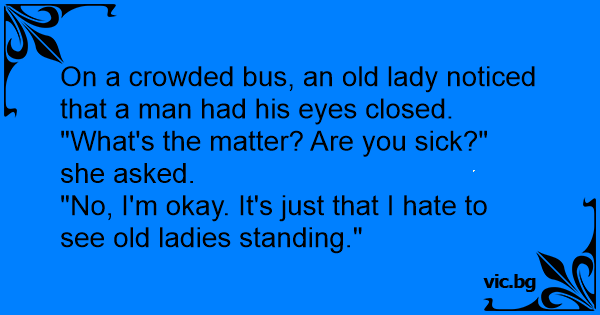 "No, I'm okay. It's just that I hate to see old ladies standing."