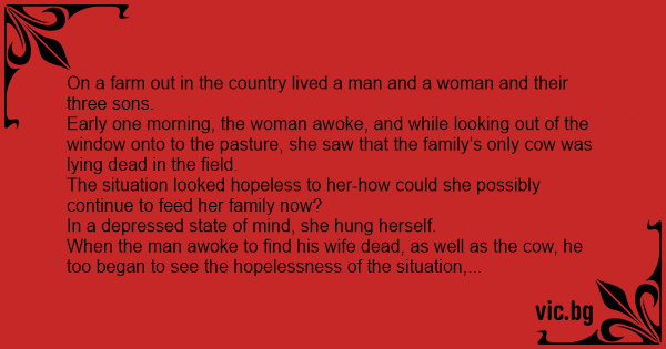 Early one morning, the woman awoke, and while looking out of the window onto to the pasture, she saw that the family’s only соw was lying dead in the field.