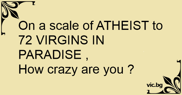 On a scale of ATHEIST to 72 VIRGINS IN PARADISE ,