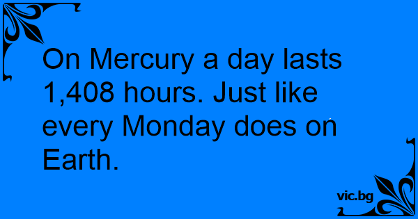 On Mercury a day lasts 1,408 hours. Just like every Monday does on Earth.