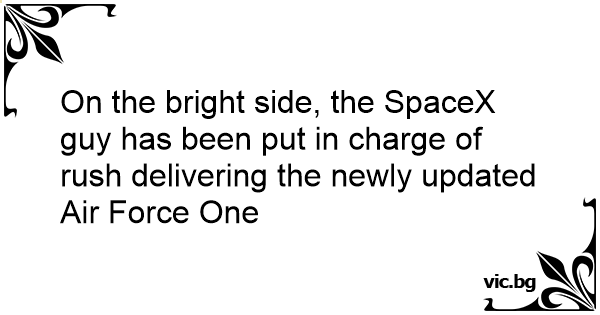 On the bright side, the SpaceX guy has been put in charge of rush delivering the newly updated Air Force One