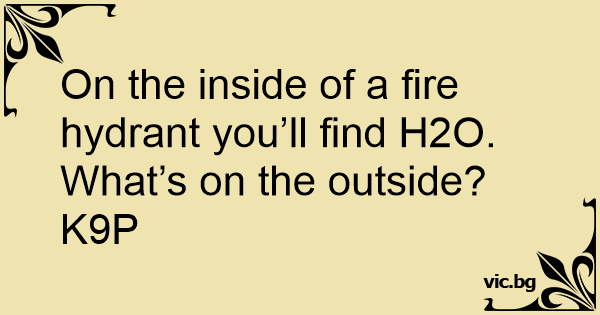 On the inside of a fire hydrant you’ll find H2O. What’s on the outside? K9P