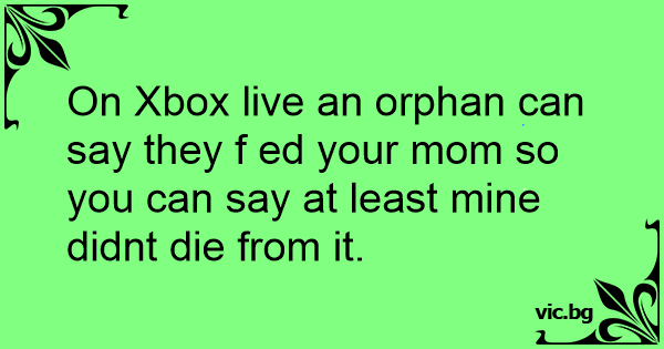 On Xbox live an orphan can say they f ed your mom so you can say at least mine didnt die from it.