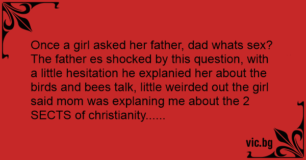 Once a girl asked her father, dad whats sеx? The father es shocked by this question, with a little hesitation he explanied her about the birds and bees talk, little weirded out the girl said mom was explaning me about the 2 SECTS of christianity......