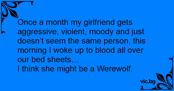 Once a month my girlfriend gets aggressive, violent, moody and just doesn’t seem the same person, this morning I woke up to blood all over our bed sheets…