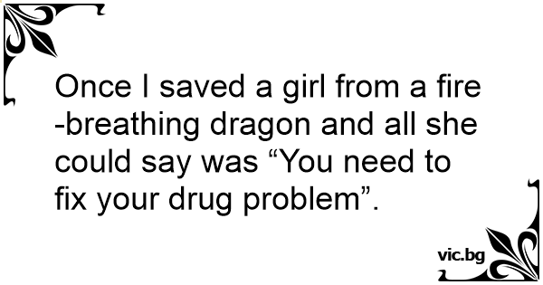 Once I saved a girl from a fire-breathing dragon and all she could say was “You need to fix your drug problem”.