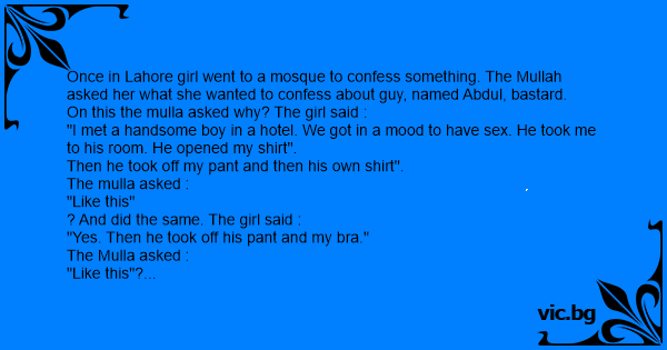Once in Lahore girl went to a mosque to confess something. The Mullah asked her what she wanted to confess about guy, named Abdul, ваsтаrd.