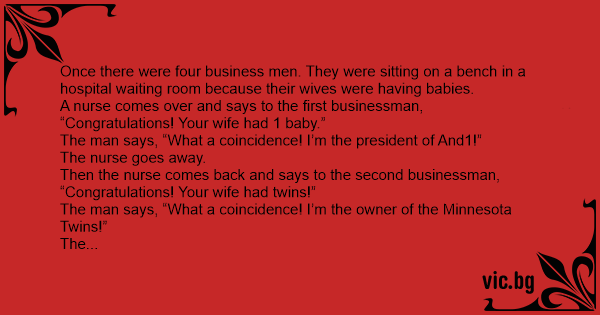 Once there were four business men. They were sitting on a bench in a hospital waiting room because their wives were having babies.