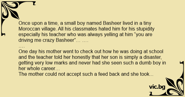 Once upon a time, a small boy named Basheer lived in a tiny Moroccan village. All his classmates hated him for his stupidity especially his teacher who was always yelling at him “you are driving me crazy Basheer”… ….
