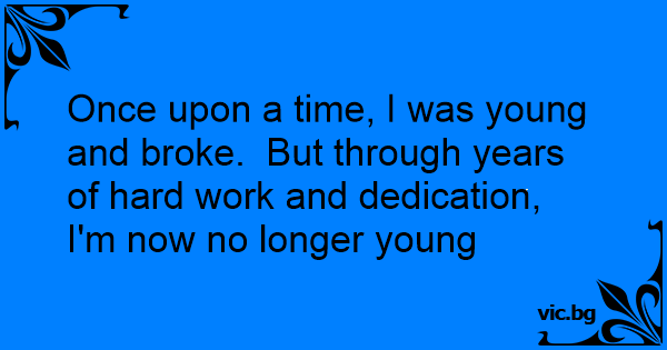 Once upon a time, I was young and broke. But through years of hard work and dedication, I'm now no longer young