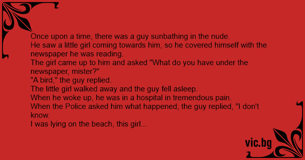 The girl came up to him and asked "What do you have under the newspaper, mister?"