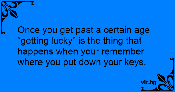 Once you get past a certain age “getting lucky” is the thing that happens when your remember where you put down your keys.