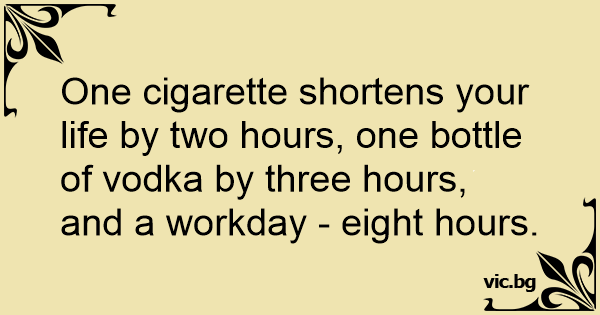 One cigarette shortens your life by two hours, one bottle of vоdка by three hours, and a workday - eight hours.