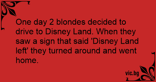 One day 2 blondes decided to drive to Disney Land. When they saw a sign that said 'Disney Land left' they turned around and went home.