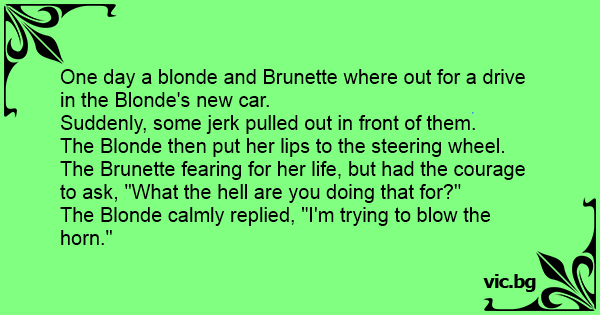 One day a blonde and Brunette where out for a drive in the Blonde's new car.