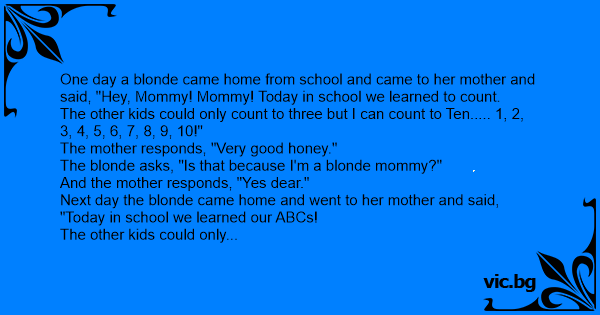 One day a blonde came home from school and came to her mother and said, "Hey, Mommy! Mommy! Today in school we learned to count.