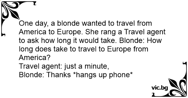 A szőke nő betelefonál a repülőtéri ügyfélszolgálatra: - Jó napot! Azt szeretném megkérdezni, hogy mikor indul Amerikába a Malév 2810-es gépe?? - Egy pillanat... - Köszönöm szépen.