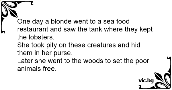 One day a blonde went to a sea food restaurant and saw the tank where they kept the lobsters.