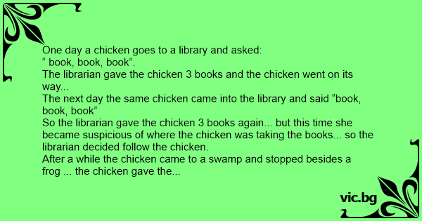 The next day the same chicken came into the library and said “book, book, book”