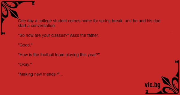 One day a college student comes home for spring break, and he and his dad start a conversation.