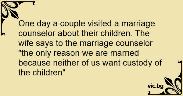 One day a couple visited a marriage counselor about their children. The wife says to the marriage counselor "the only reason we are married because neither of us want custody of the children"