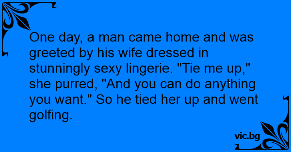 One day, a man came home and was greeted by his wife dressed in stunningly sеxy lingerie. "Tie me up," she purred, "And you can do anything you want." So he tied her up and went golfing.