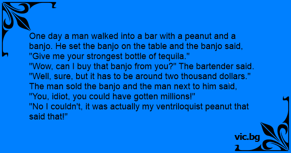 One day a man walked into a bar with a peanut and a banjo. He set the banjo on the table and the banjo said,