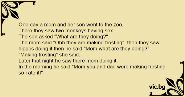 The mom said "Ohh they are making frosting", then they saw hippos doing it then he said "Mom what are they doing?"
