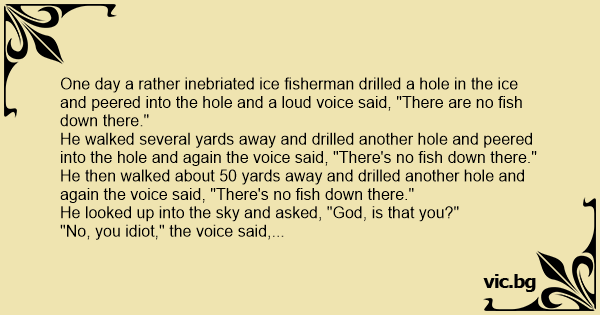 One day a rather inebriated ice fisherman drilled a hole in the ice and peered into the hole and a loud voice said, "There are no fish down there."