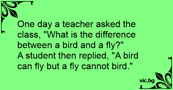 One day a teacher asked the class, "What is the difference between a bird and a fly?"