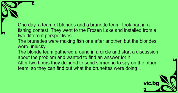 One day, a team of blondes and a brunette team took part in a fishing contest. They went to the Frozen Lake and installed from a two different perspectives.