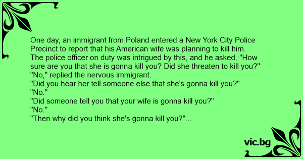 A Polish man moved to the USA and married an American girl. Although his English was far from perfect, and they got along very well. One day he rushed into a lawyer’s office and asked him if he...