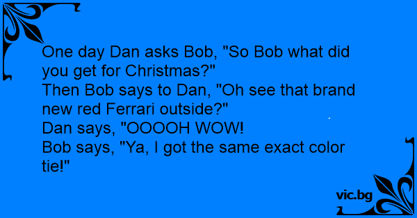 Then Bob says to Dan, "Oh see that brand new red Ferrari outside?"
