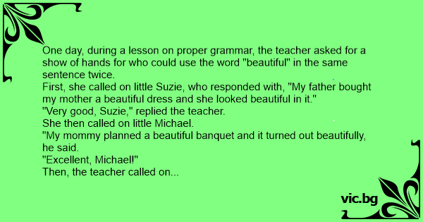 One day, during a lesson on proper grammar, the teacher asked for a show of hands for who could use the word "beautiful" in the same sentence twice.