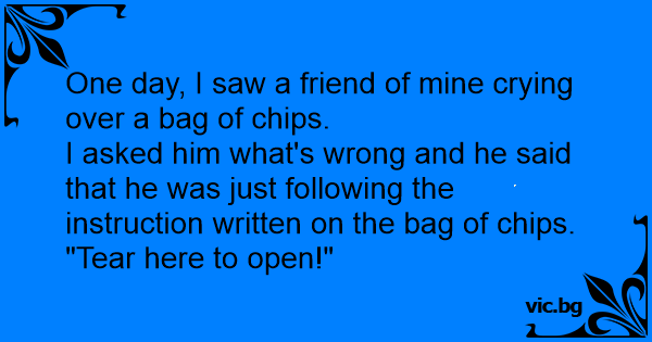 I asked him what's wrong and he said that he was just following the instruction written on the bag of сhiрs.