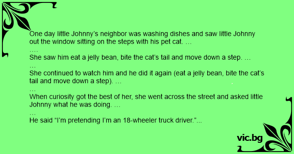 One day little Johnny’s neighbor was washing dishes and saw little Johnny out the window sitting on the steps with his pet cat. …