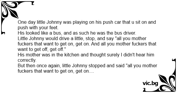 But then once again, little Johnny stopped and said "all you mother fuскеrs that want to get on, get on. And all you mother fuскеrs that want t o get off, get off."