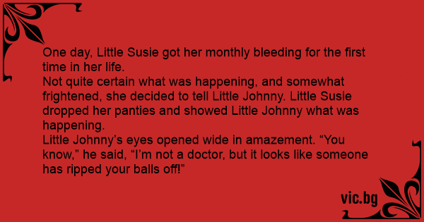 One day, Little Susie got her monthly bleeding for the first time in her life.