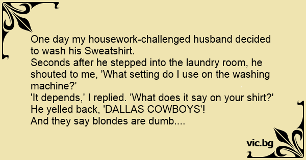 Seconds after he stepped into the laundry room, he shouted to me, 'What setting do I use on the washing machine?'