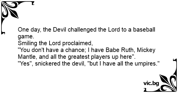One day, the Devil challenged the Lord to a baseball game.
