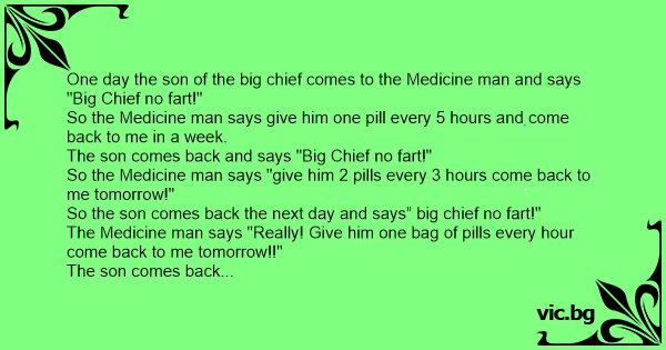 One day the son of the big chief comes to the Medicine man and says "Big Chief no fаrт!"
